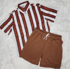 Hombres Conj Camisa marron raya y Short